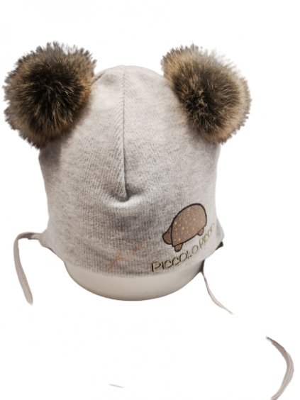 Kojenecká čepice, zdobebá potiskem a bambulkami, na zavazování.