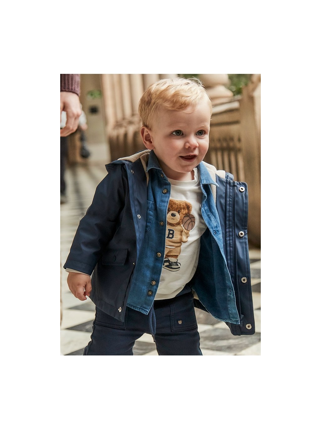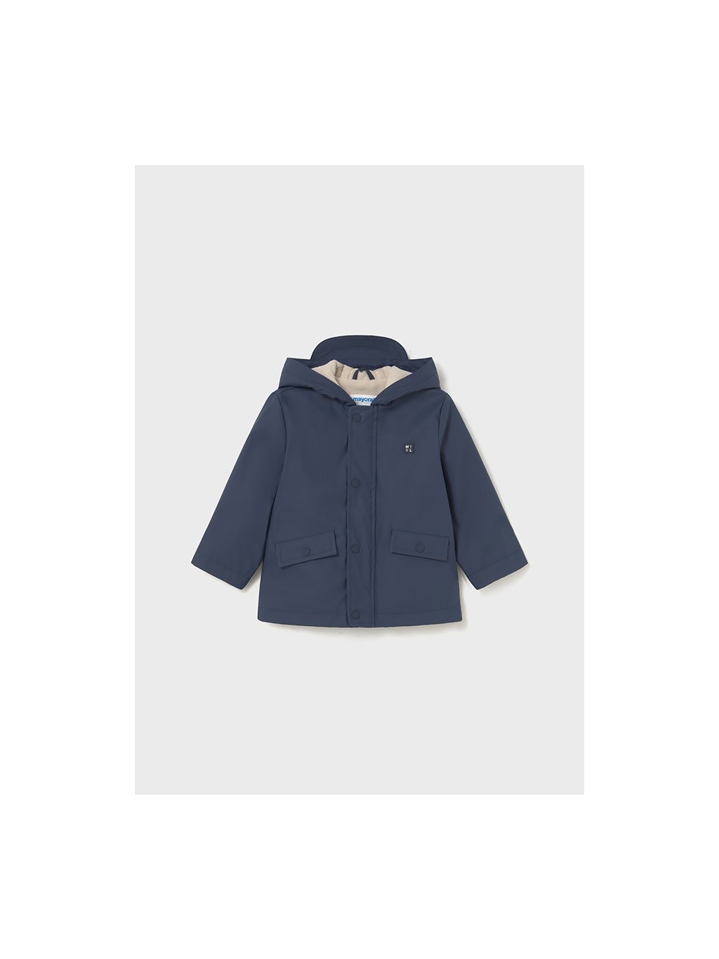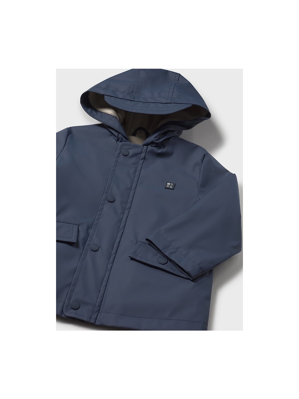 Přechodová, šusťáková bunda s kapucí na zip i druky. Podšitá flízem, lehce vyteplená.