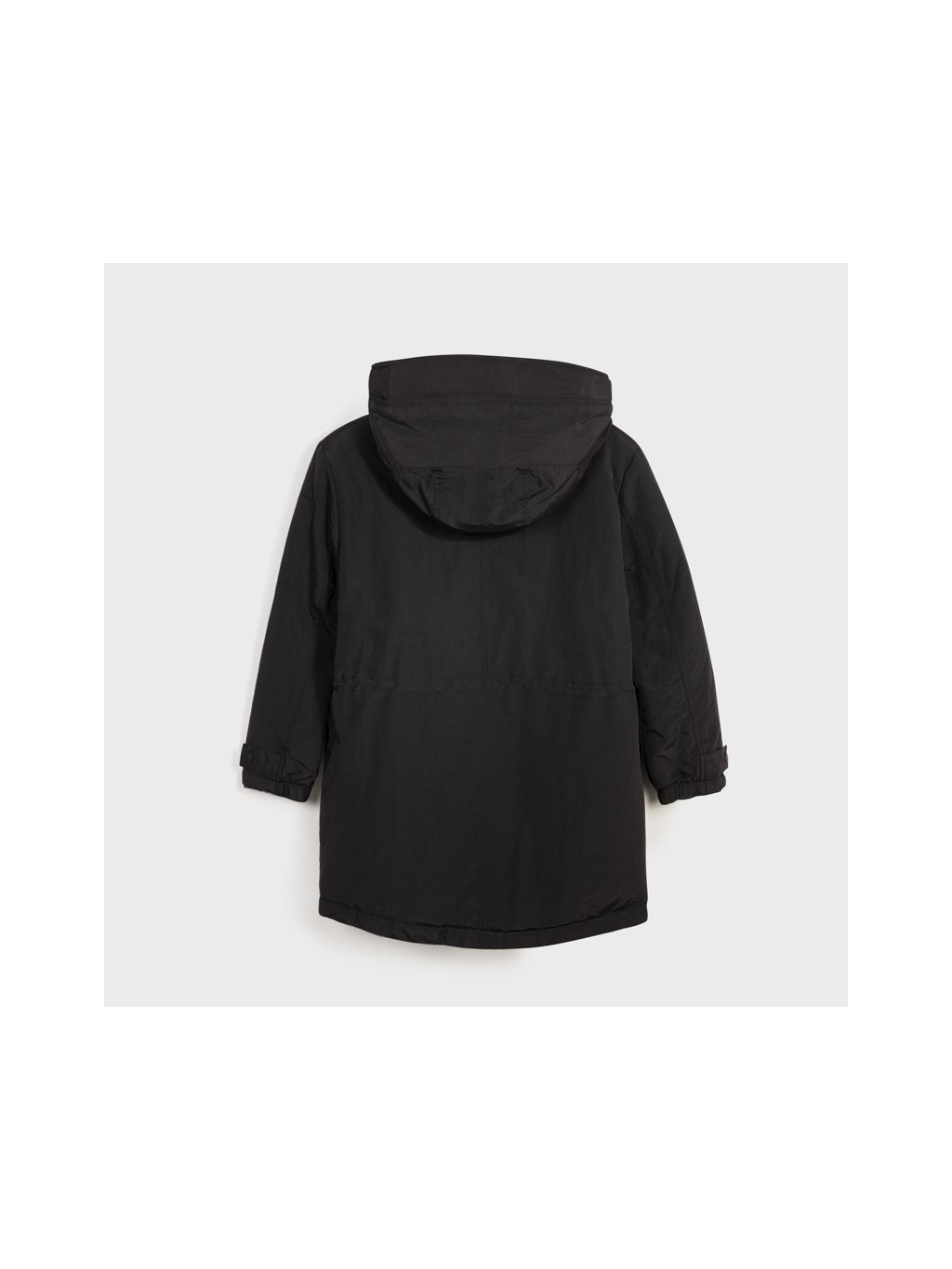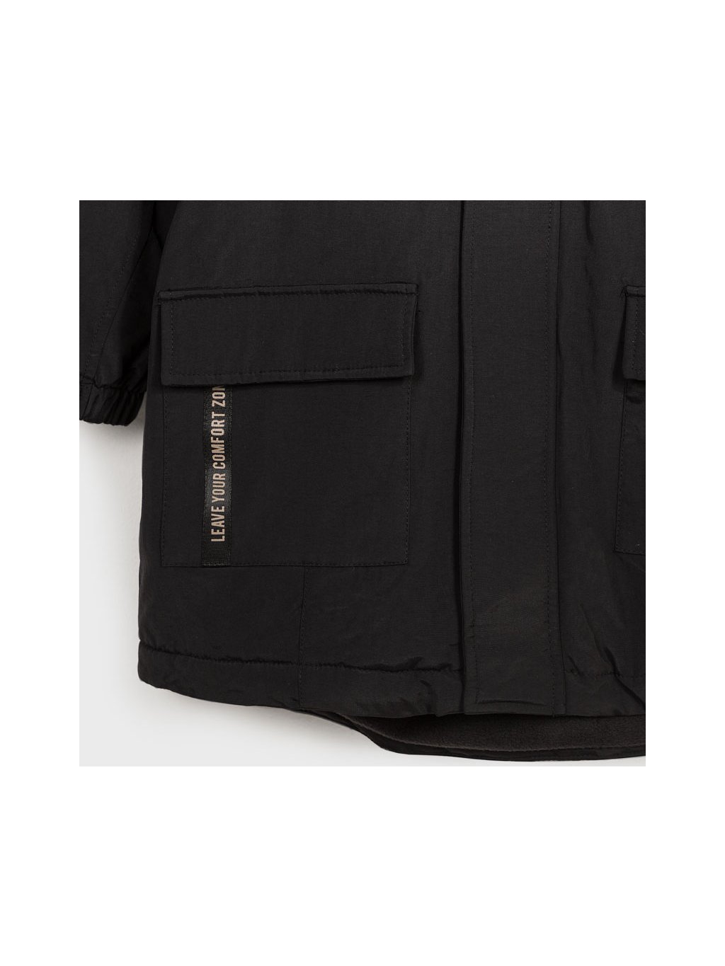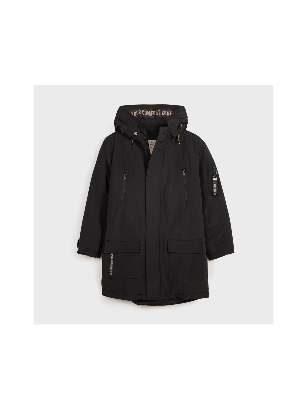 Delší vyteplená bunda s kapucí, funkční kapse, zapínání na zip překrytý