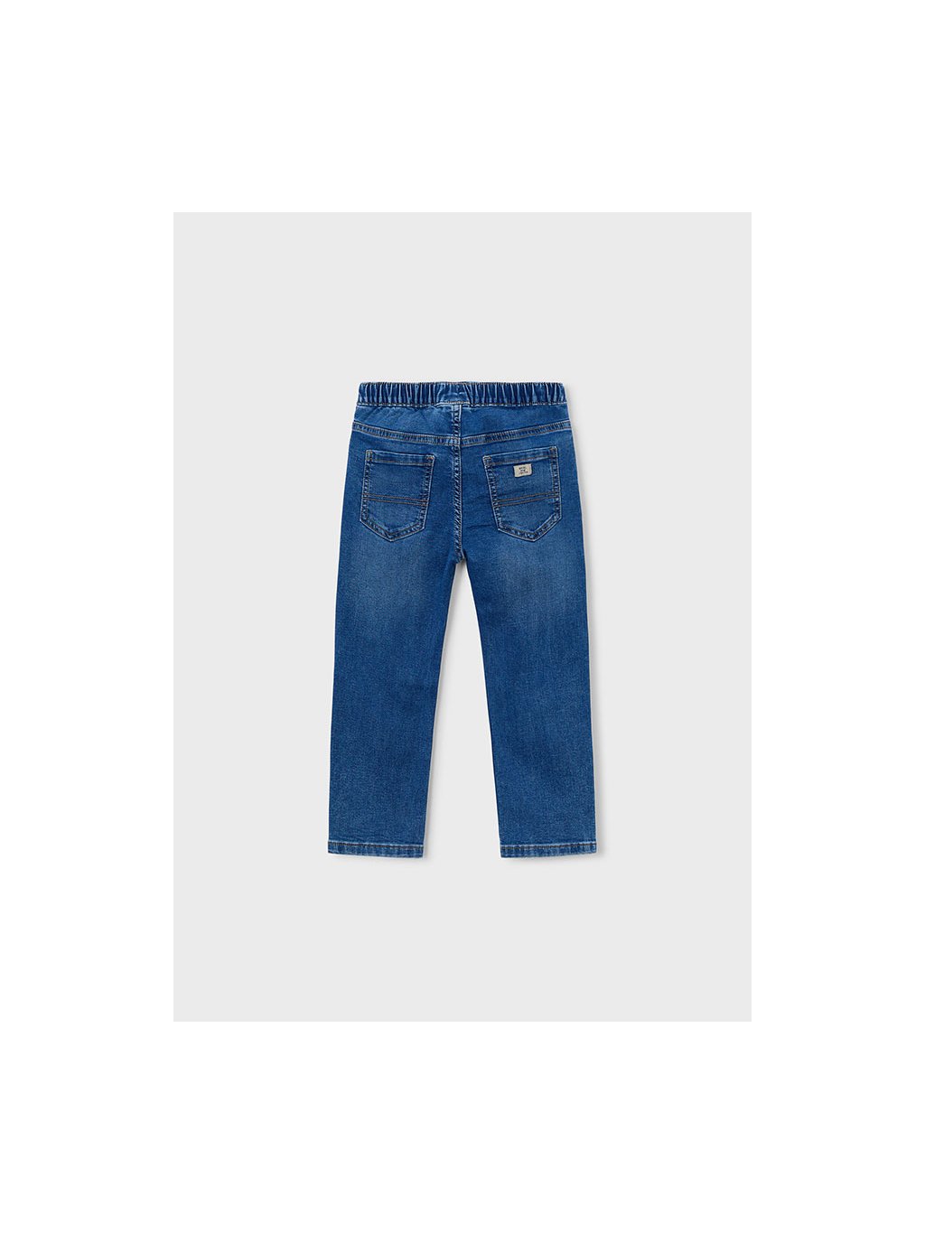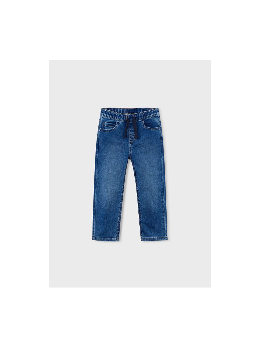 Chlapecké kalhoty do gumy s kapsami, příjemný riflový materiál. Jednoduché na oblékaní.