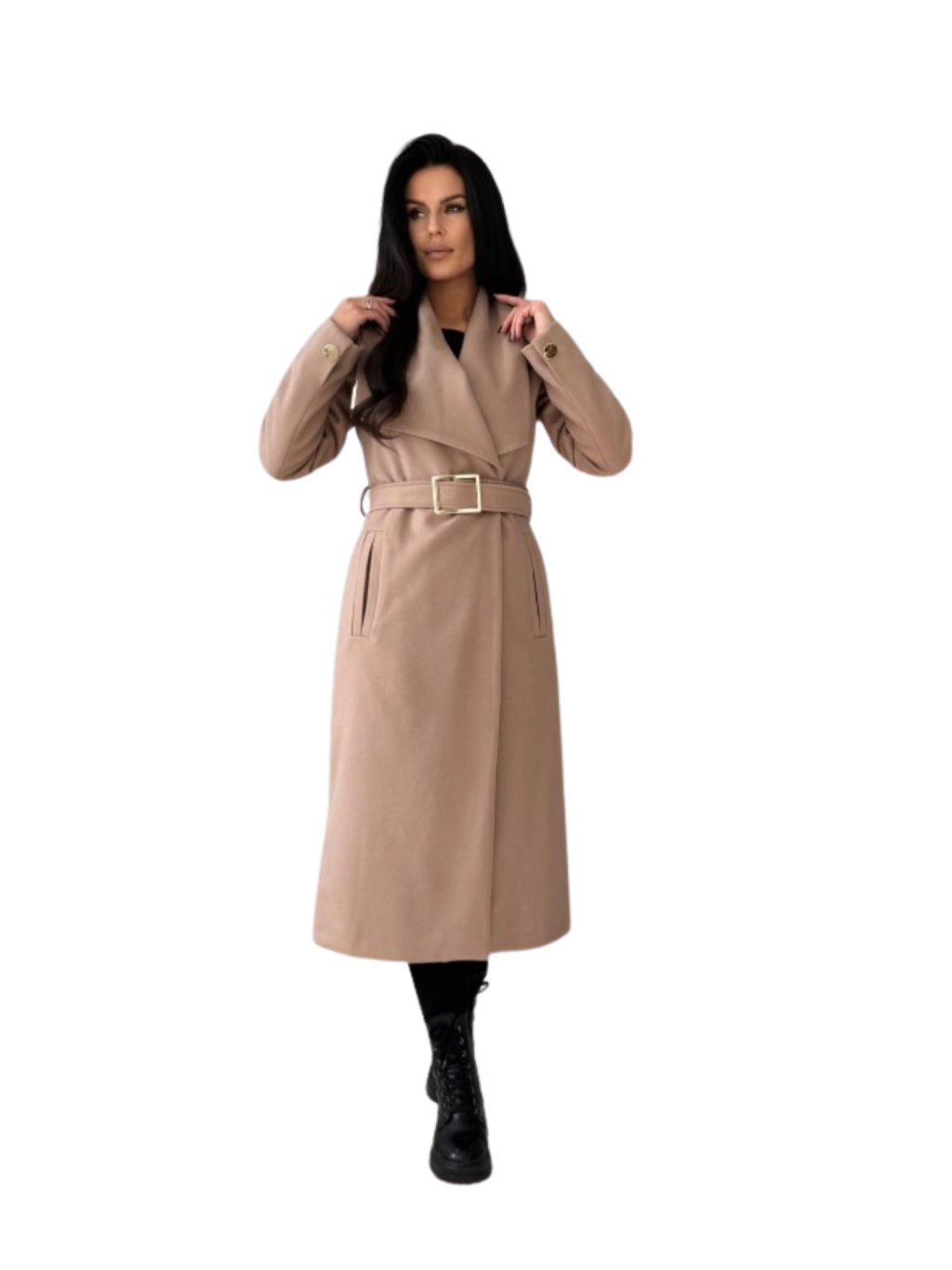 Módní krásný a kvalitní kabát s podšívkou, lze zapnout na knoflíky nebo pásek
