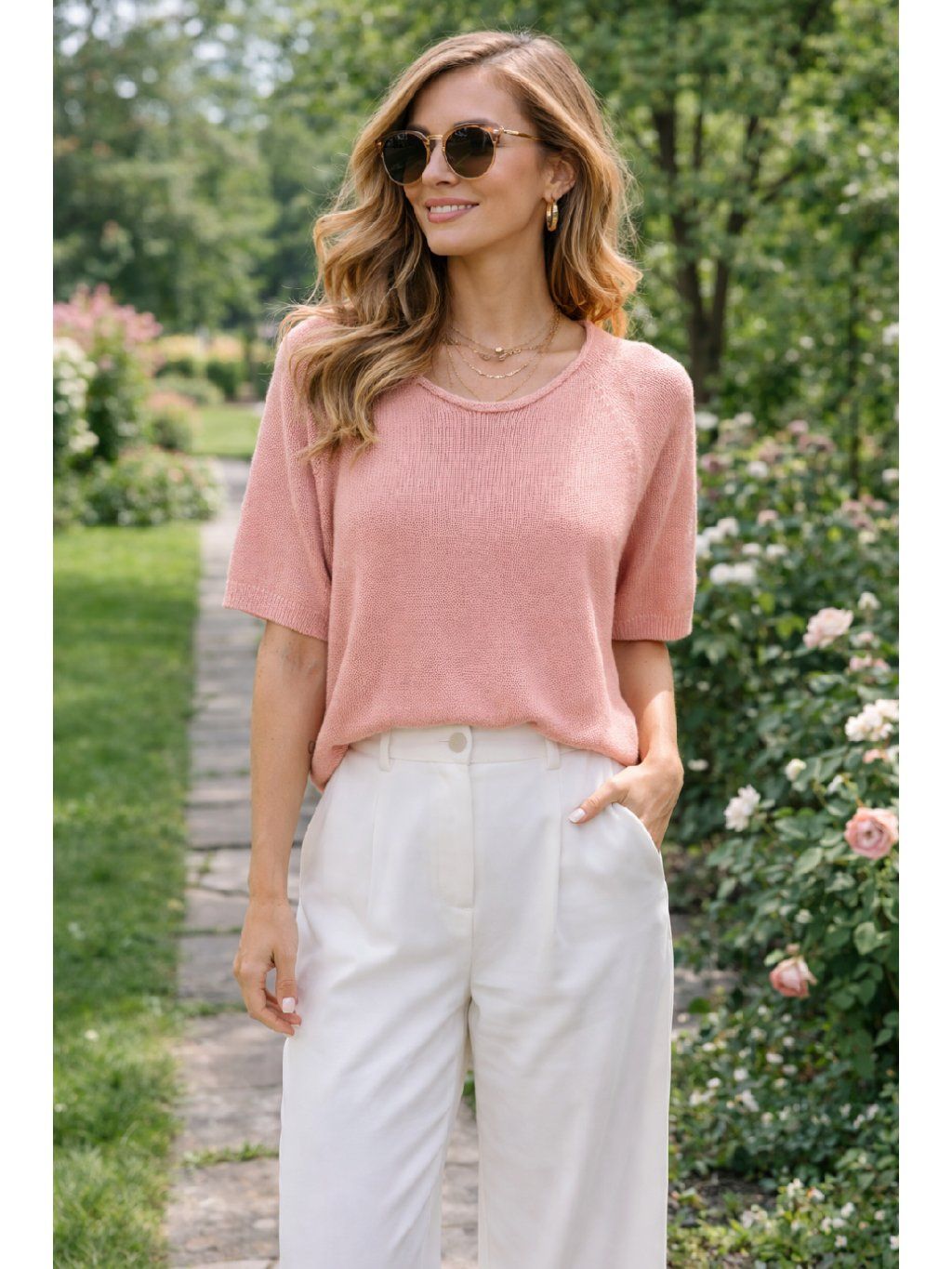 Elegantní lehký svetr s krátkým rukávem