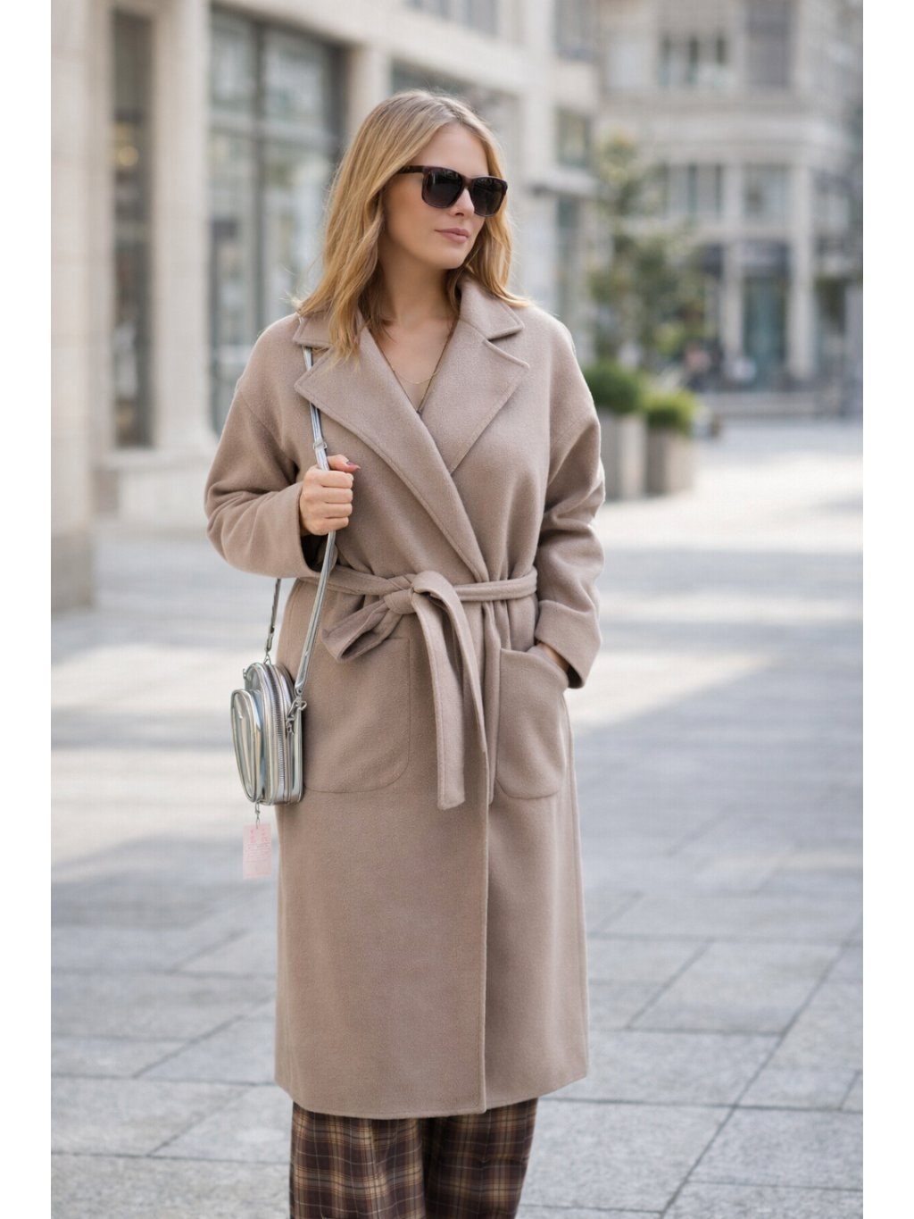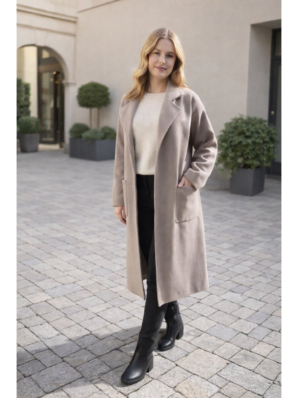 Módní krásný a kvalitní kabát s podšívkou, lze zapnout páskem