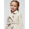 Trenčkotový kabát, dvojřadé zapínání na knoflíky. Odepínací kapuce, zavázování v pase.