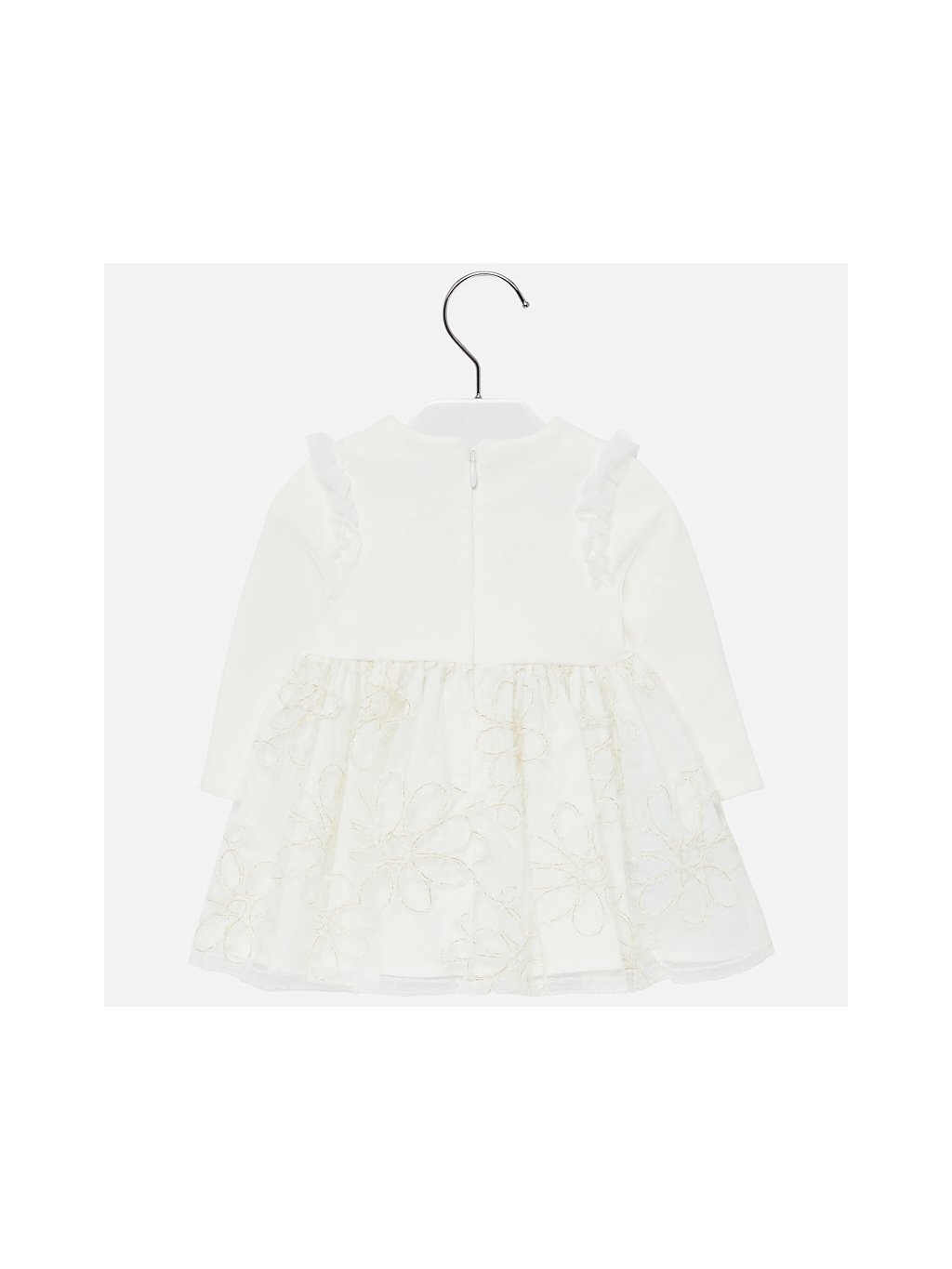 Zdobené, smetanové, kojenecké šaty s tylovou sukýnkou. Lehce vyteplené, Zapínání na zádech na zip.