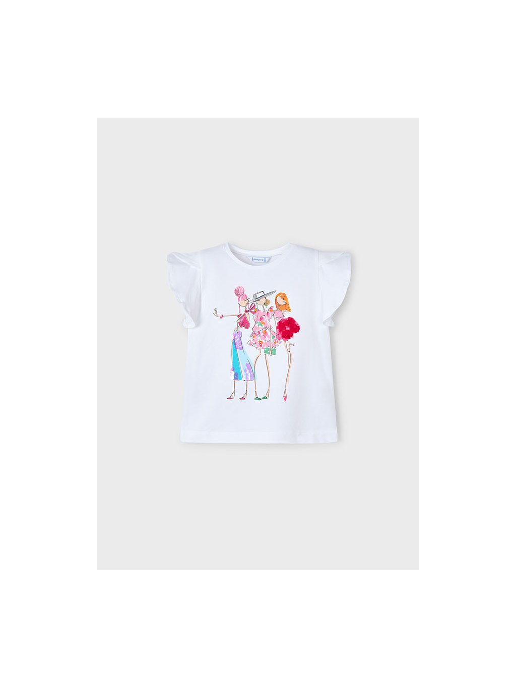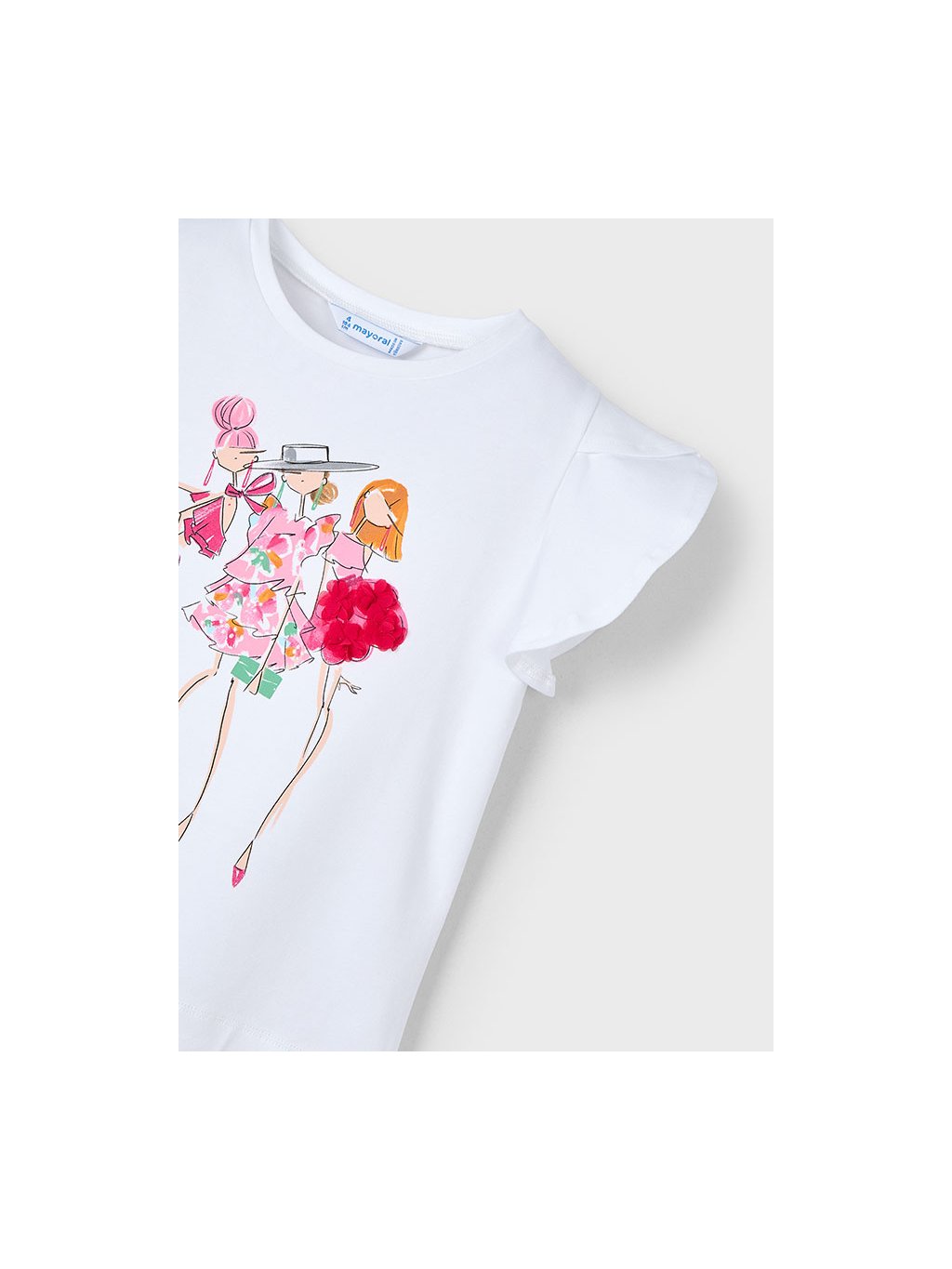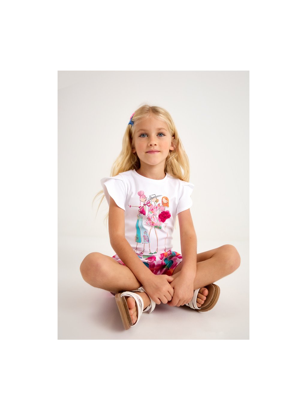 Letní dívčí triko s potiskem a zdobenými rukávky
