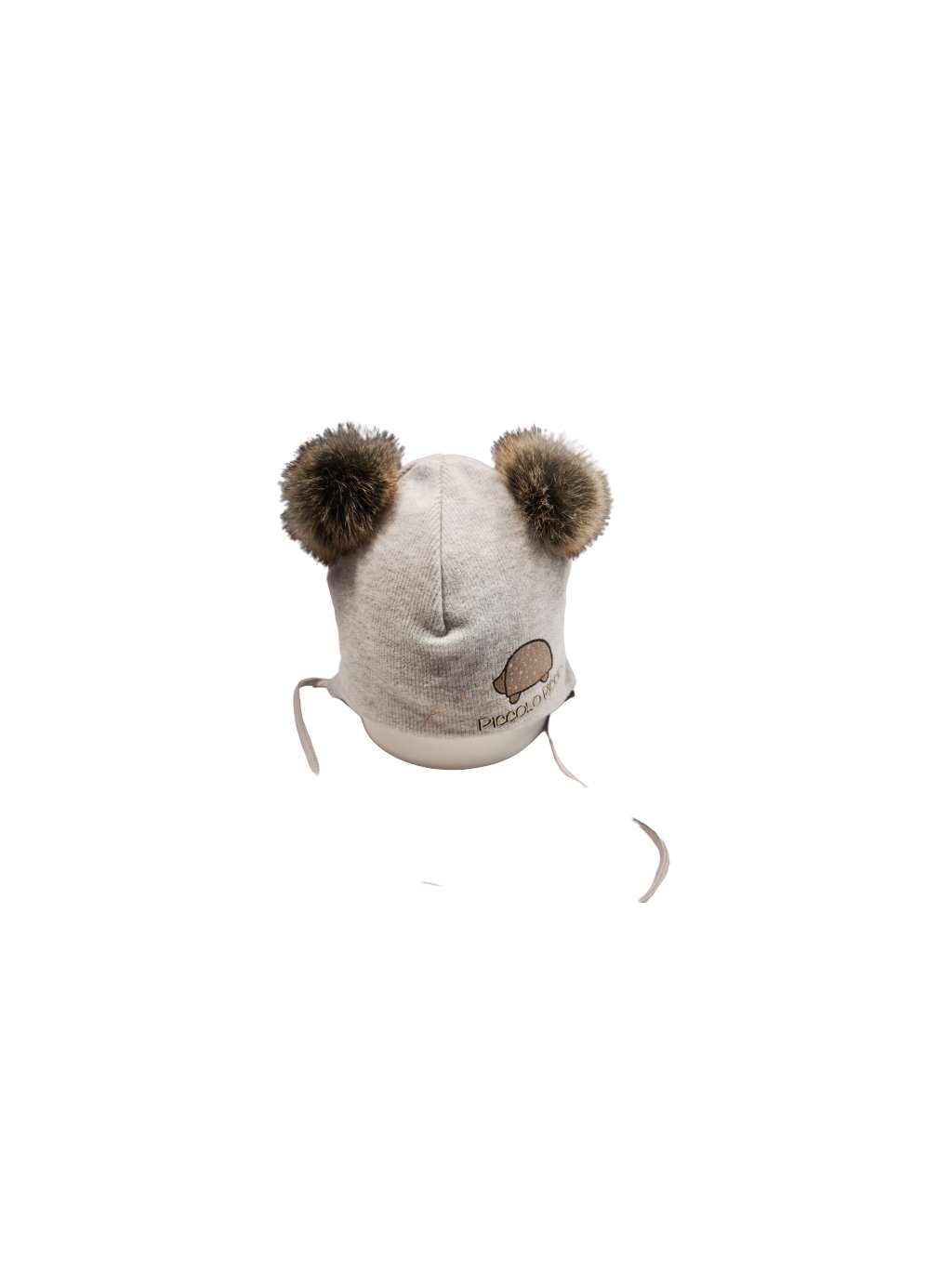 Kojenecká čepice, zdobebá potiskem a bambulkami, na zavazování.