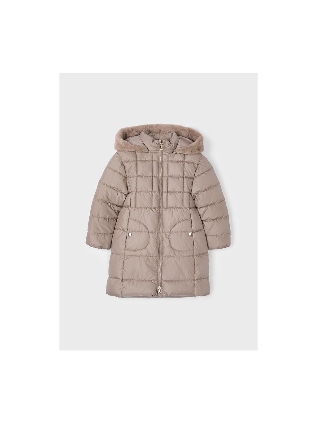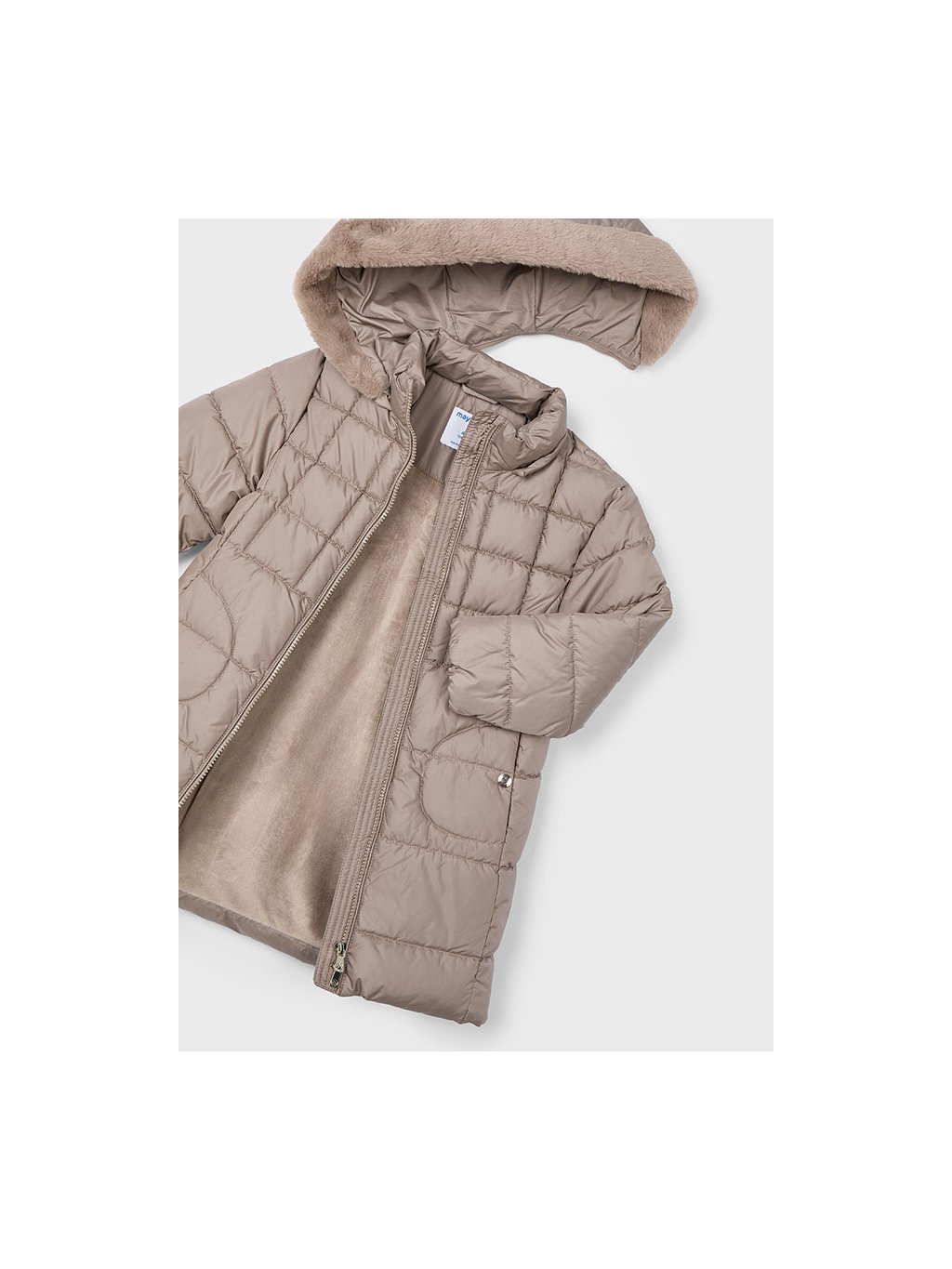 Zímní delší bunda s jemného materiálu s odepínací kapucí s kožíškem