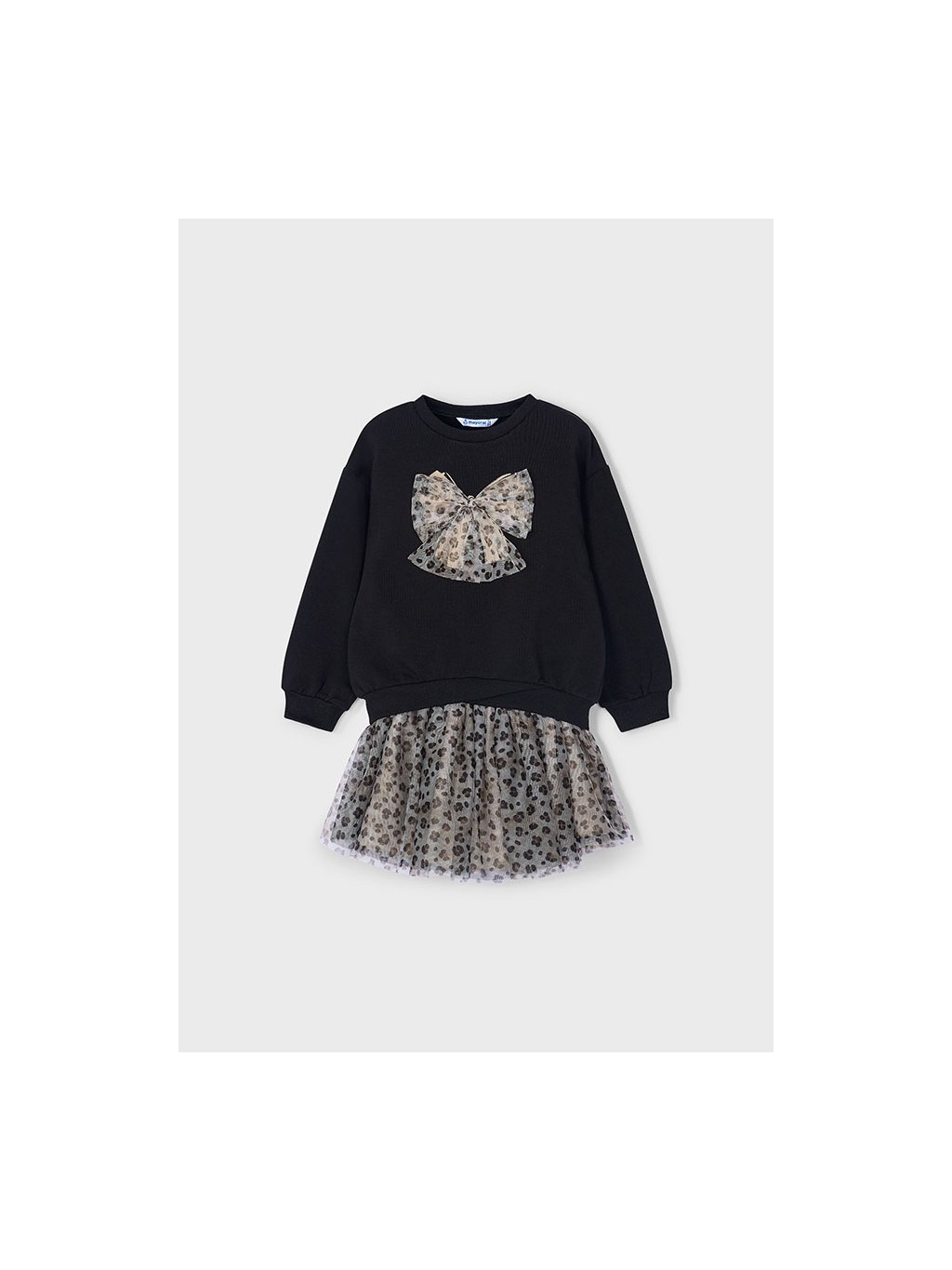 Příjemná mikina přes hlavu s krásnou mašlí a bohatou sukní, lze nosit každé zvlášť, spolu to vypadá jako šaty