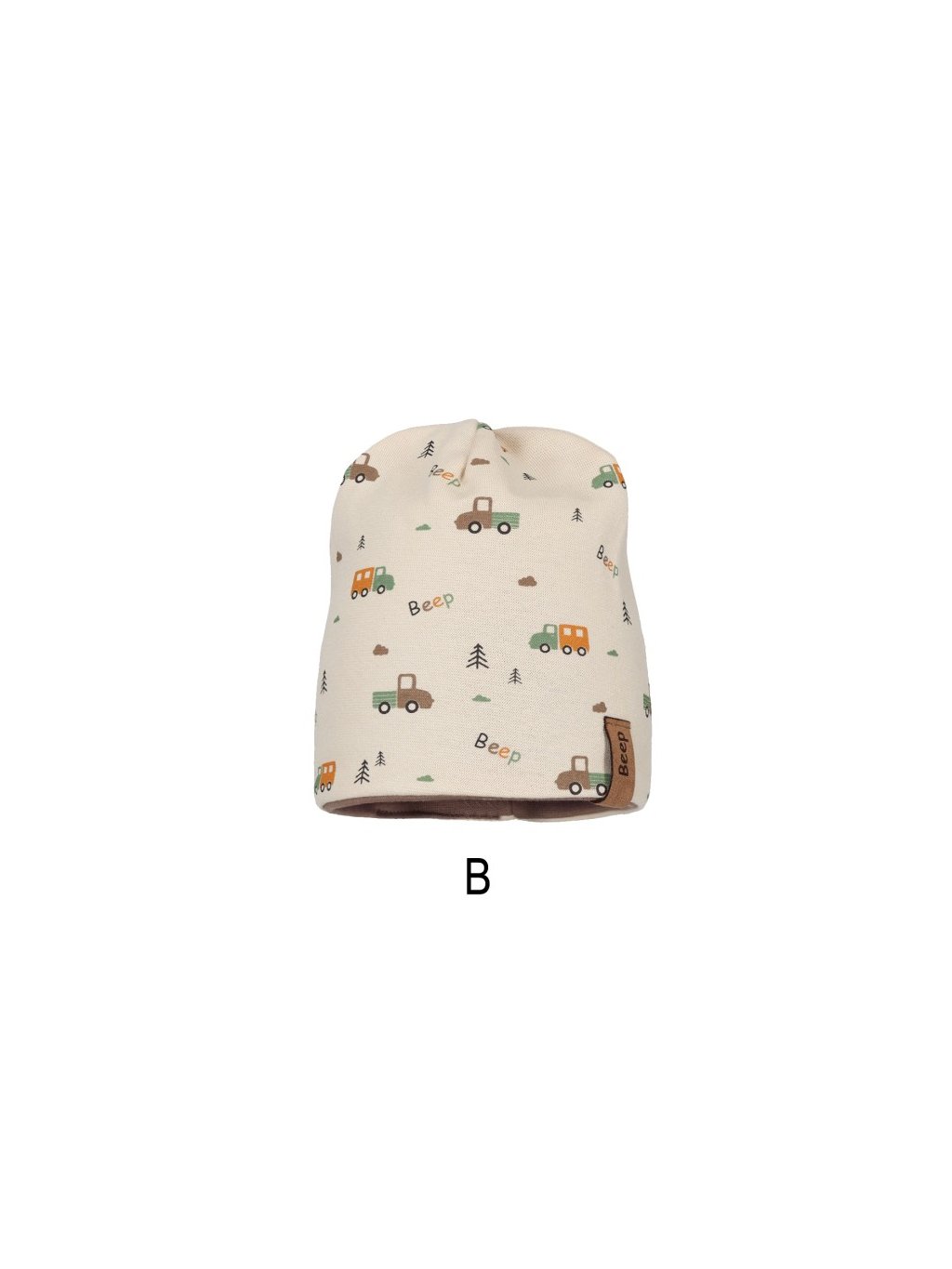 Čepice na jaro nebo podzim, ale i lehčí zimu, je ze zdvojeného materiálu
