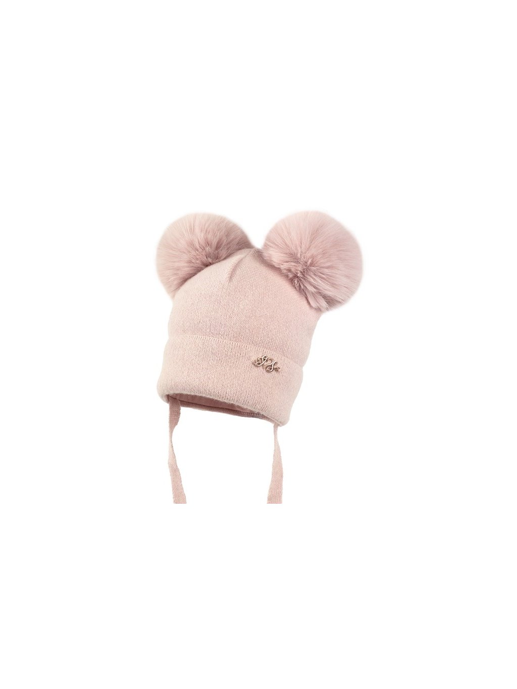 Zimní čepice JAMIKS Claudine s bambulemi růžová, smetanová